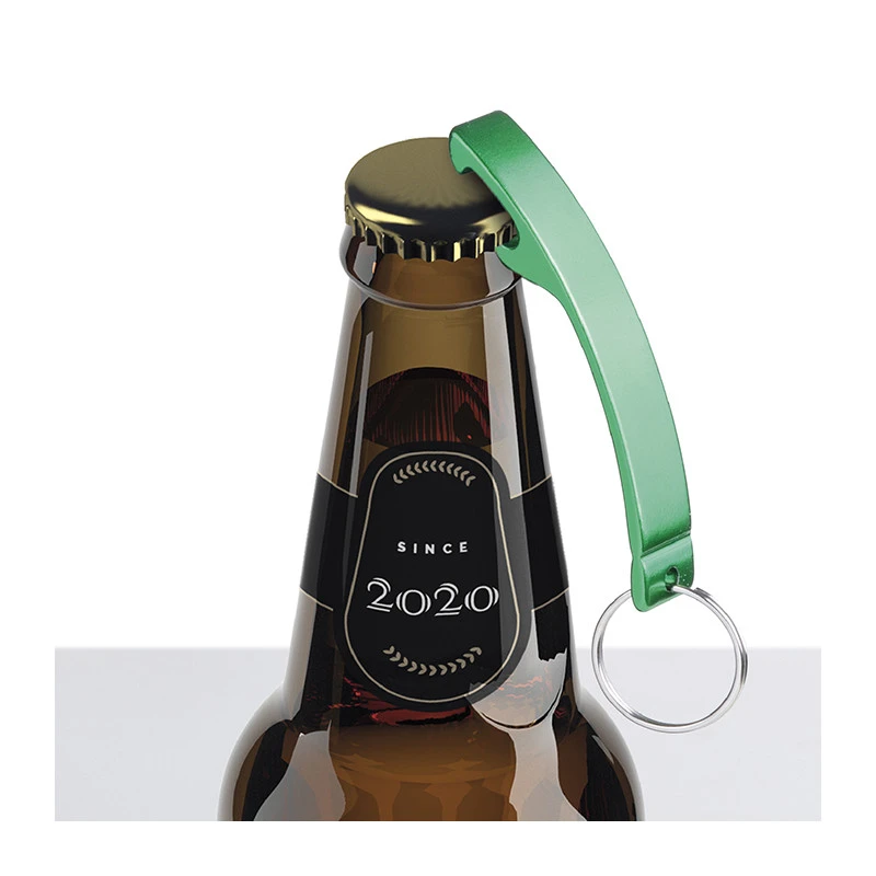 Portachiavi rettangolare in alluminio colorato, con anello in metallo, a forma di cavatappi, personalizzabile tramite incisione di un testo, logo o sequenza di numeri